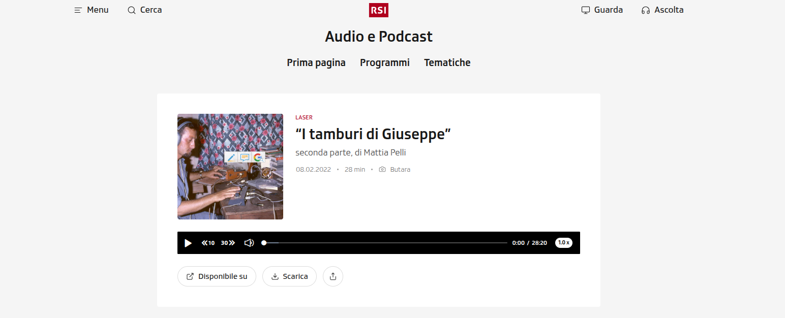 “I tamburi di Giuseppe” è un viaggio in due puntate andato in onda sulla Rete Due della RSI che, partendo dai suoni registrati su un vinile misterioso del 1971, ci porta indietro fino all’Africa degli anni della decolonizzazione, seguendo le tracce di un missionario che si dedica all’etnomusicologia. Giuseppe Coter, originario di un piccolo comune vicino a Bergamo, negli anni Cinquanta decide di diventare Comboniano e quando nel 1966 verrà spedito dalla sua congregazione in Burundi, porterà con sé un registratore Uher con l’intento di raccogliere le musiche di quel Paese.